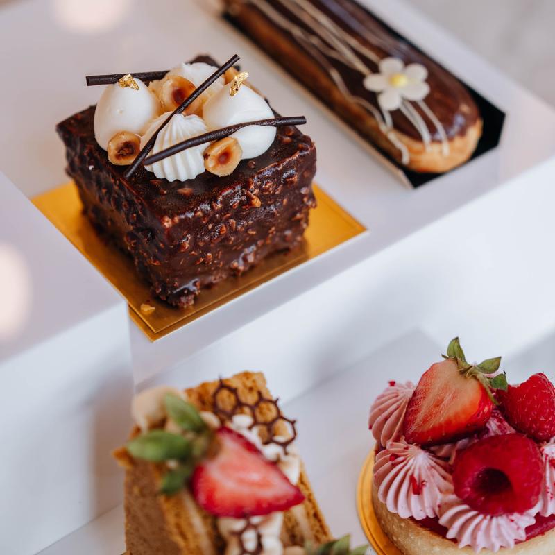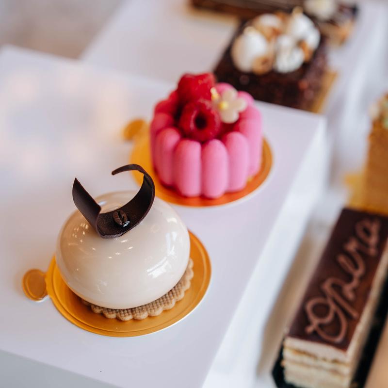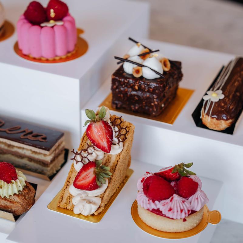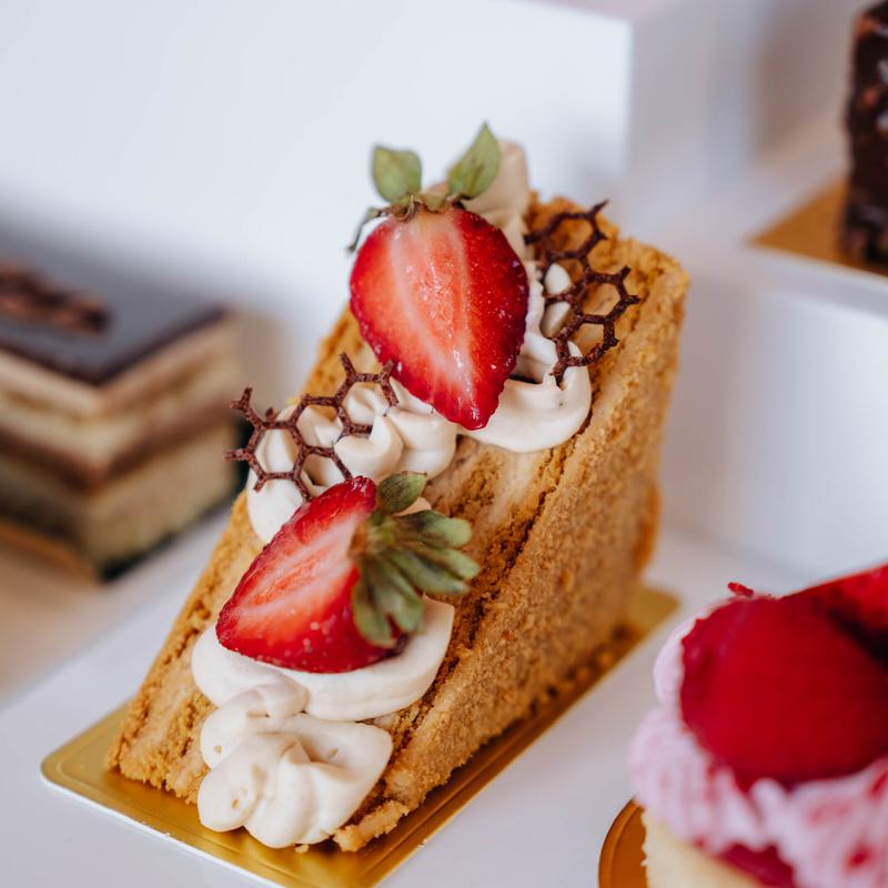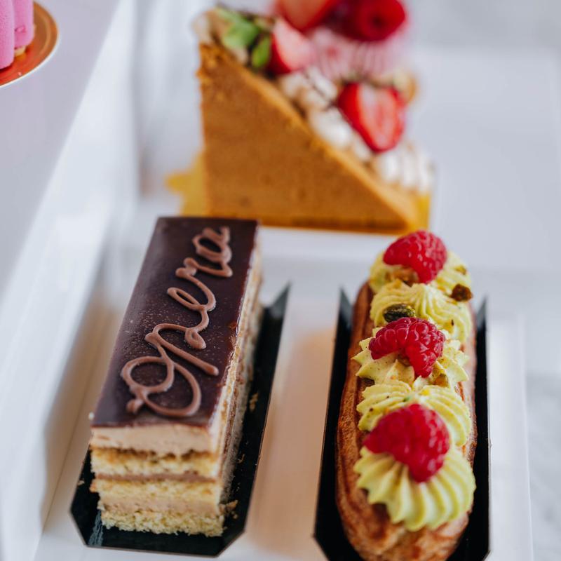 Pistachio cheesecake was rich, creamy and delicious. Had an iced salted caramel latte that was sweet but maintained its coffee flavor. Staff were welcoming and helpful. Interior was clean and bright with places to sit and enjoy your drink and food. Glass case had so many pastries and goodies it was hard to choose.